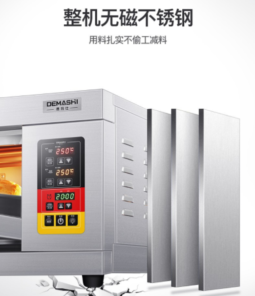 溫度范圍400度,烤箱的材質材質就是前面不銹鋼,后面烤漆板, 內部免漆板 ,保溫層9公分厚,帶6個記憶按紐,第一次設置好之后直接按記憶按鈕1、2、3、4、5、6,帶記憶、帶定時電腦版分層式電烤箱 紅外線電熱管。烤爐擁有多種規格:1層2盤、2層4盤、3層6盤、3層9盤,供您選擇。電烤箱要根據您現在使用的額定電壓發貨的,兩相電是220V,三相電是380V。建議用6平方線!60A空氣開關!一般商用的電器都是沒有插頭,為了更好保護設備和安全需要用到空氣開關,自備電線跟水管的,我們提供接線視頻的!