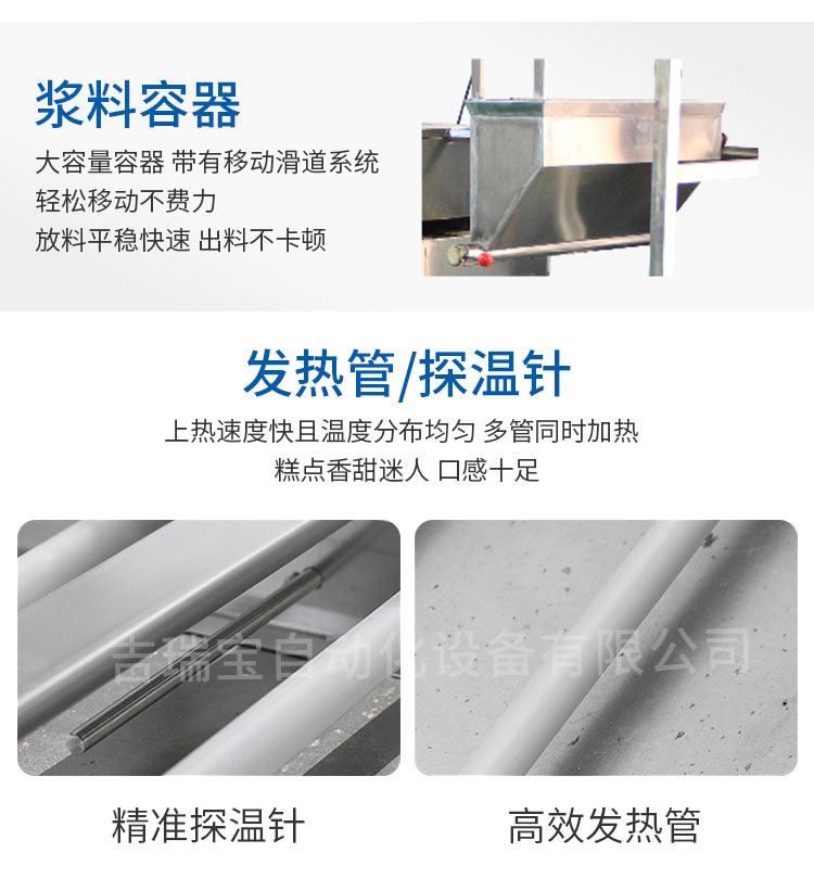 ⒈槽子糕機(jī)烤盤固定:對烤盤可直接固定,投料時可對烤盤直接投料,不需要人工搬進(jìn)搬出,節(jié)約大量時間,能量損耗以及人工費用。